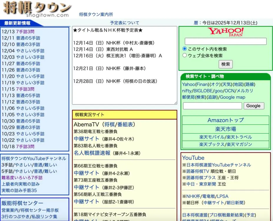 「将棋タウン」は、入門前の超初心者から有段者まで楽しめる老舗の将棋総合サイトです。埼玉県・入間将棋センターの席主・磯田氏が運営しており、長年にわたって膨大なコンテンツが蓄積されています。